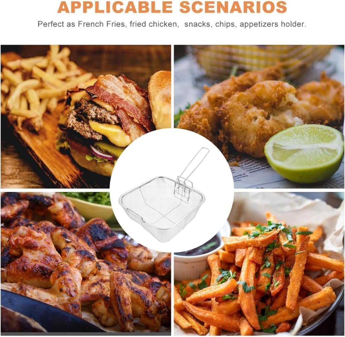 Great for Giift Giving A perfect Christmas, Thanksgiving, and birthday giift, Deep Fry Basket is both aesthetics and practicality, suitable for friends, family, colleagues, etc Widespread Adoption A must-have for every home kitchen, Fry Basket is a double boiler air fryer available and can be used for French fries, chicken wings, onion rings, and other foods Efficient Tools The wonderful Fry Baskets with Handle reduces spatter by increasing mesh count, allowing steam to escape normally, lightweight mes