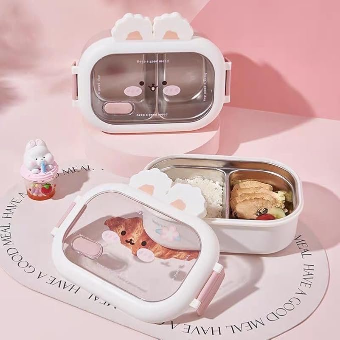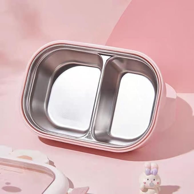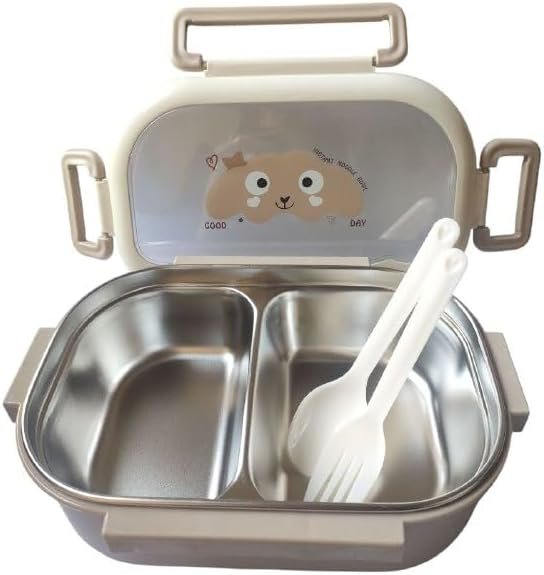 Smart Portion Design; Helps keep balanced meals organized in two places. 【Built-in Utensil】 Convenient spoon and fork included, so you don't forget your cutlery. 【Secure Locking System】 Leak-proof and child-safe with an easy-open lid. 【Microwave Safe】 Easily heats food at school or daycare. 【Dishwasher Safe 】Easy cleanup after school.