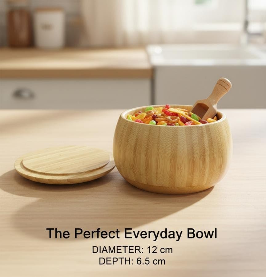 This premium bamboo canister is "The Perfect Kitchen Canister" for keeping your pantry staples fresh and organized. With a versatile 400 ml capacity, it is specifically designed to hold dry goods such as coffee beans, colorful candies, or chocolate chips. The canister features an 8 cm diameter and a 10 cm depth, providing a space-efficient footprint that fits comfortably on any countertop or shelf. Crafted from natural, sustainable bamboo, it showcases a beautiful grain and is paired with a matching lid and ergonomic knob to ensure your ingredients are stored with style and ease.