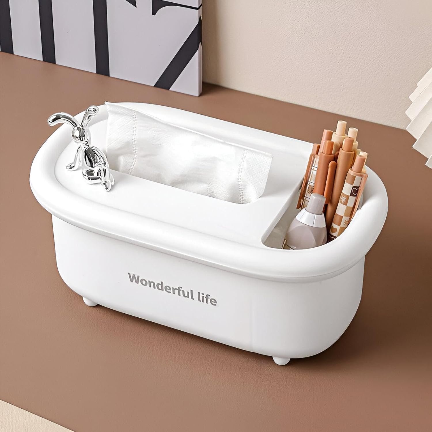 Made of high-quality plastic, this tissue box dispenser ensures durability and longevity, making it easy to clean and maintain, while ensuring reliable daily use without any wear or damage. Not only does this shape enhance the aesthetics of the room, it also adds a touch of comfort and sophistication to your home decor, transforming a simple tissue box into an elegant piece that adds a distinctive touch to any living room.