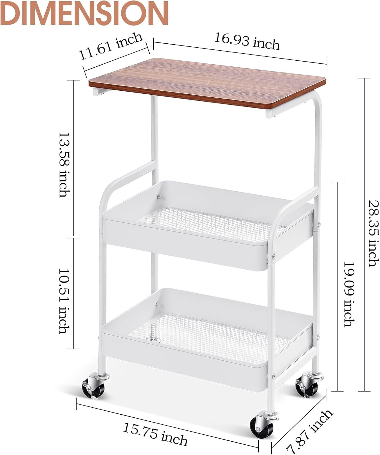 【Sturdy & Stable】 The utility rolling cart is made of high quality steel frame and MDF board, with the good performance of waterproof, scratch-resistant, anti-rust, durable for long-term use. Thick metal frame and durable tabletop makes it sturdy enough to hold up to 11lbs