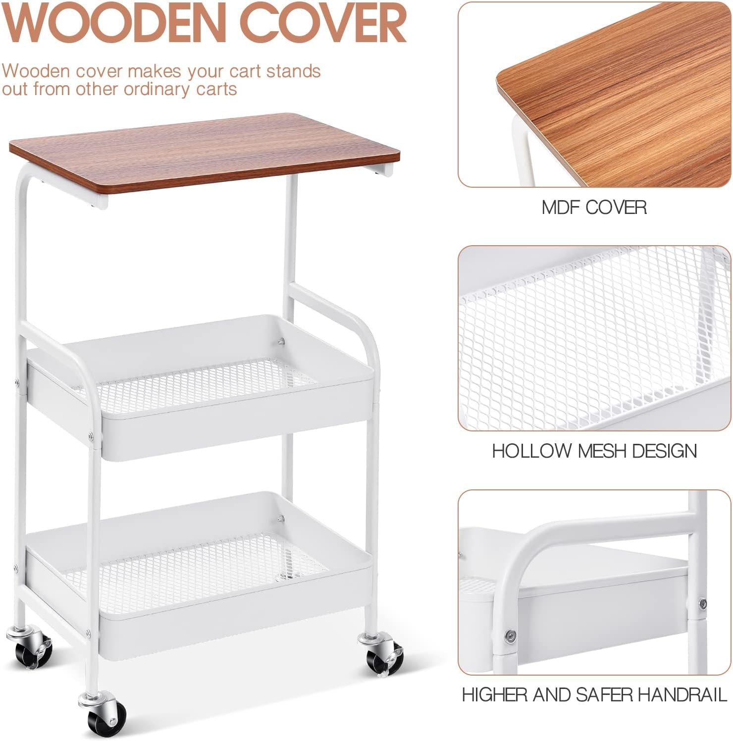 【Versatile Tabletop】This upgraded rolling cart with tabletop provides more storage space for you. The MDF board table top can be used as a table to place small printer, laptop, or other items, especially suitable for apartment, dormitory, nursery, etc