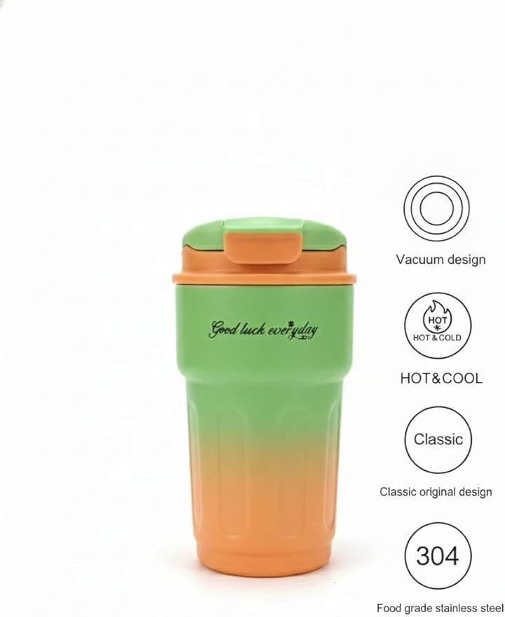 A thermal, vacuum-insulated tumbler designed for keeping both hot and cold beverages at their desired temperature for extended periods.