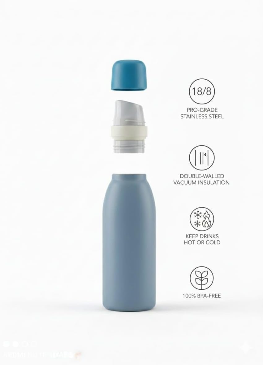 A double-walled, vacuum-insulated thermal bottle designed to maintain the temperature of your beverages, whether hot or cold, for several hours. It is crafted from durable, pro grade stainless steel, ensuring a safe and hygienic drinking experience.