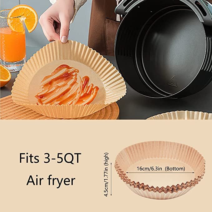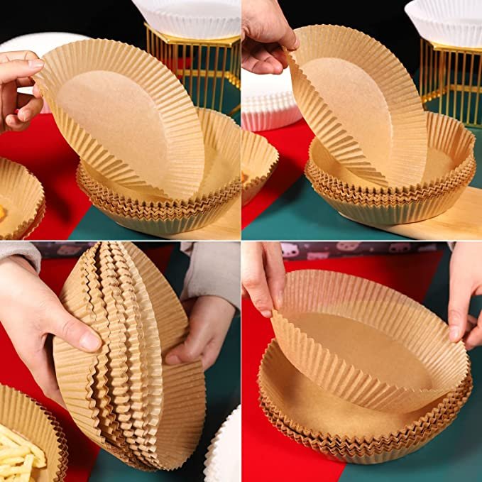 Baking Helper: Including 100PCS disposable paper liners, sufficient quantity to meet your daily cooking and baking needs. Non-Stick air fryer paper liners oil absorption and heat insulation are more durable, absorb excess fat from food, and can also be made into low-fat biscuits in daily life.