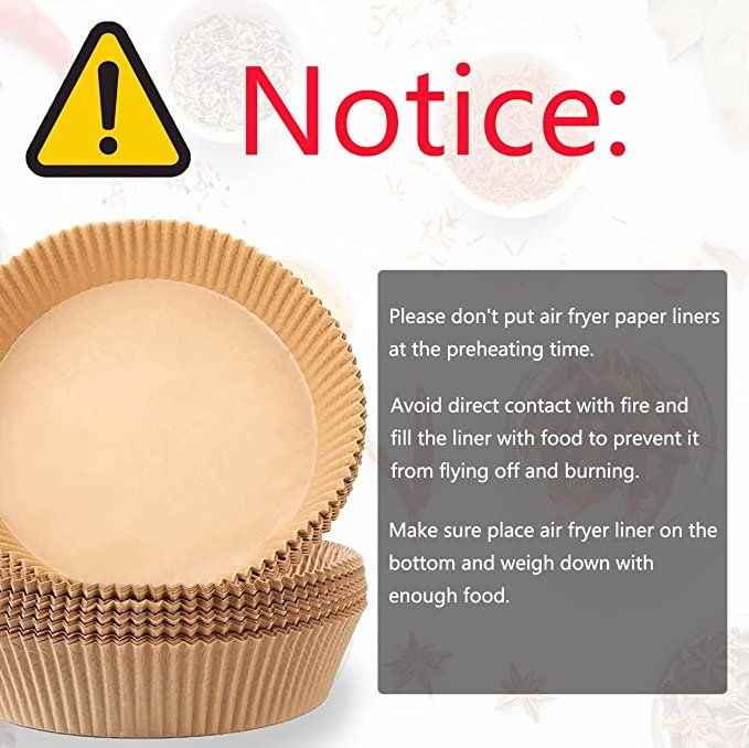 Oil-proof and No-cleaning: Double-sided air fryer disposable liners are anti-scorching and anti-sticking, disposable paper liners effectively keep food does not stick to paper, isolates oil stains and does not stick to pots and pans, which is convenient for food to be taken out. Use the protective pot air fryer disposable liners when baking is more safe and hygienic and not easy to breed bacteria, and it can be used at any time, eliminating the trouble of cleaning.