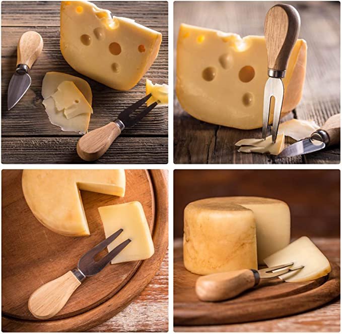 Premium Quality - The cheese knives set are all made of durable stainless steel blade and ergonomic wooden handles. Good quality cutlery that you would have no problem using to decorate a table for an evening with guests.