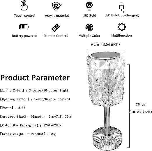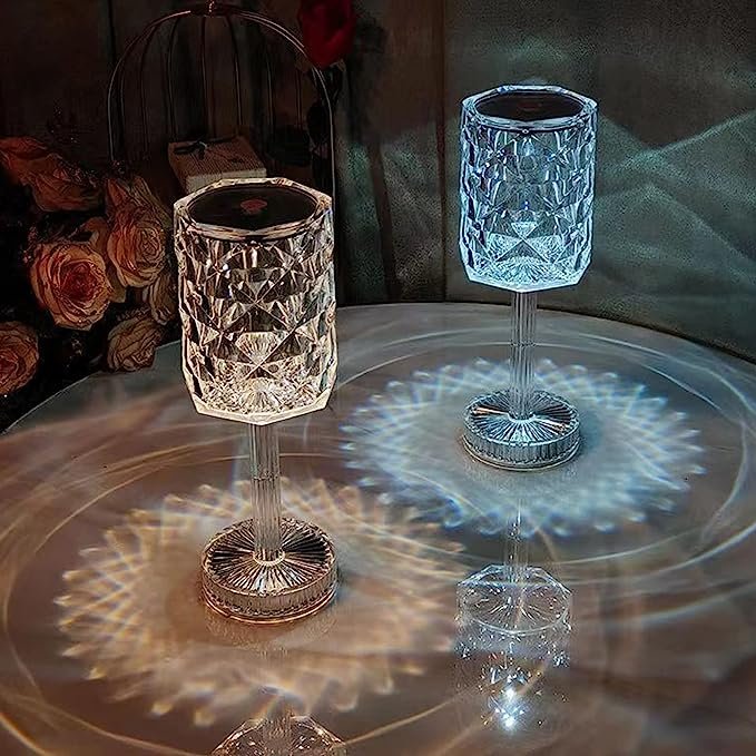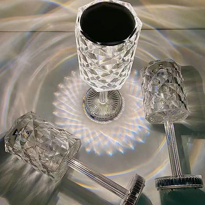 Rose Crystal Table Lamp --Using special 3D technology, The refraction crystal lamp is bright and colorful, very practical. Turn on the lamp, the 3D visual effect is like a rose blooming on the table. The diamond-cut surface makes it shine, decorate your dining table and create a romantic and elegant space.