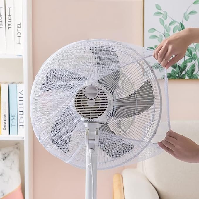 1. Material: Round electric fan dust cover made of polyester, durable, mesh design, it does allow air to pass through. The fan shield is small in size, easy to clean, easy to store and can be used for a long time.