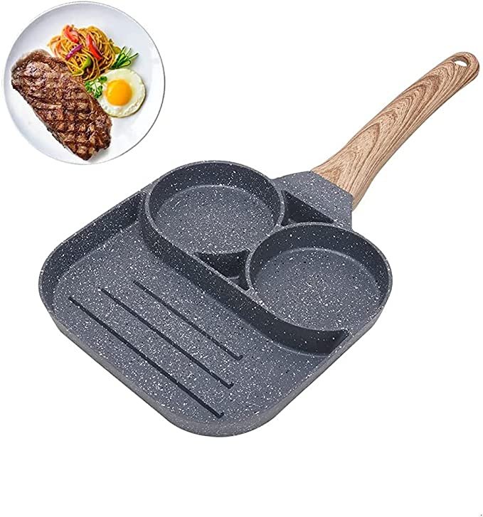 The pan can be used to make omelette, burger, pancake, etc as it features 2 round compartments to make cooking quick and easy along with a compartment for making hamburgers.