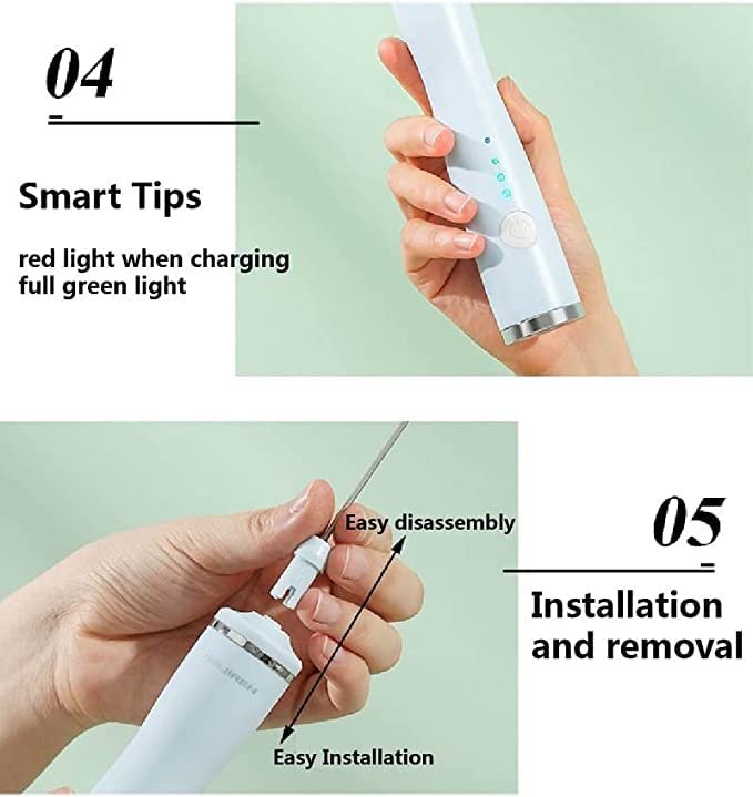 Description: Name: Coffee Milk Frother Egg Whisk Material: Stainless Steel Features: 4 In 1 Built-in Battery: 1200 mAh Speed: 3500RPm & 8500RPM & 13500RPM Charging: Full----Green Light/Charging----Red Light; Current: 0.5A Voltage: 4.5V-5.5V