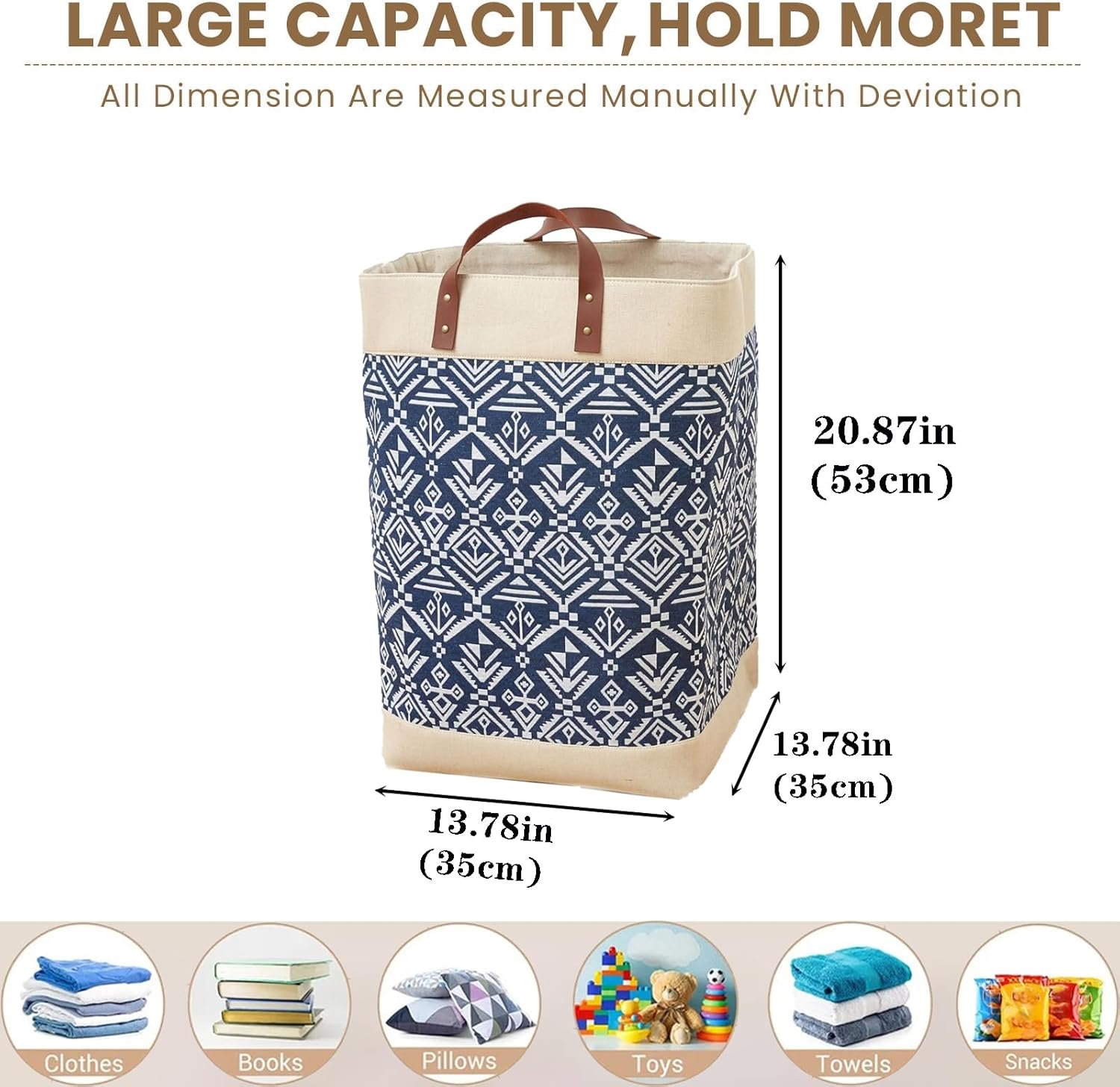 【Oversized Size Decorative Laundry Baskets】The overall size of the laundry Hamper is inches(all dimensions are measured manually with deviation). This large basket can easily accommodate the family's one-week change of clothes and keep room clean&tidy. This elegant storage basket bring great convenience in life to store bulky items like blankets,comforters,duvets,throw pillows,cushions,stuffed animals,winter clothing etc.