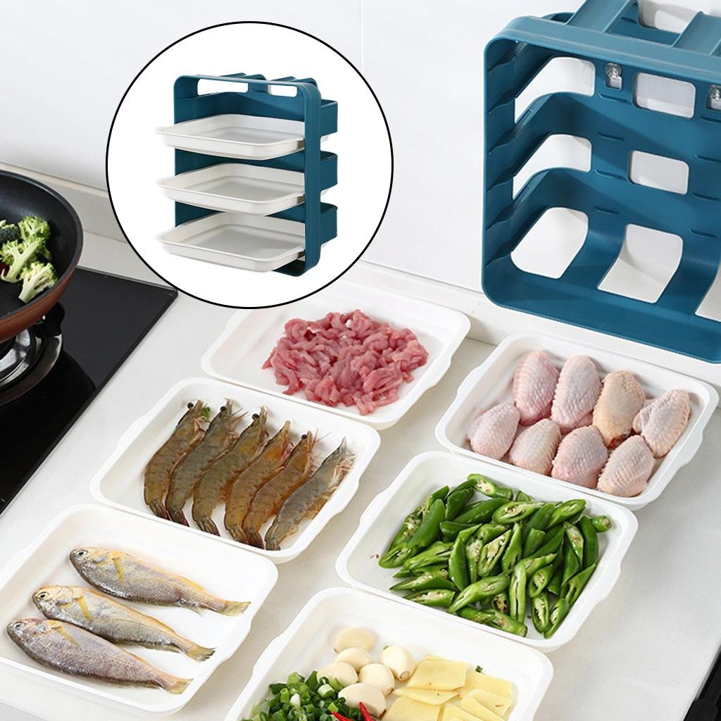 Easy Ways and Multi-purpose - This Multi-Layer Dish Can Be Placed on the Table Or On the Wall. Very Space -Saving While Preparing Food. Create storage space in your kitchen, transform unused wall and cabinet into extra shelving.Use it anywhere you like such as for picnic, b-day, travel, etc. Suitable for any food, fruits, meat, spices, ingredients cans.