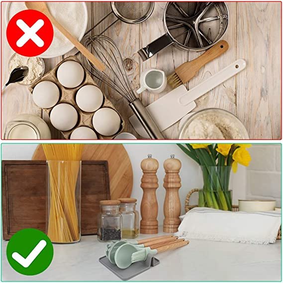 2.High Temperature Resistant: Heat resistant from -22°F to 410°F (-30°C to 210°C). This heat-resistant holder can be placed near the stove, counter top or placed in any area that prep work or cooking is done. The spoon rest is made from non-slip silicone that keeps it in place.