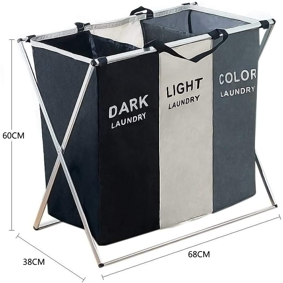LARGE CAPACITY - The laundry basket has a capacity of 137 liters with a width of 38 cm while other items are 30 cm in size. Divided into 3 sections, each can hold up to one or more standard laundry loads.