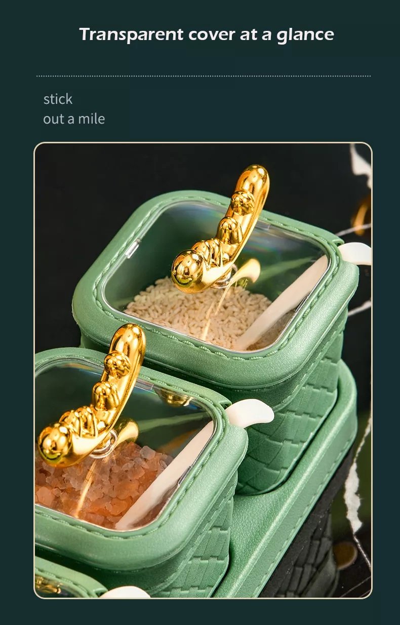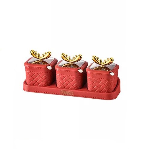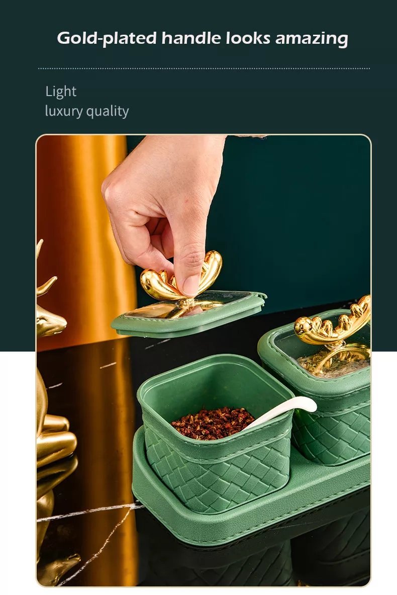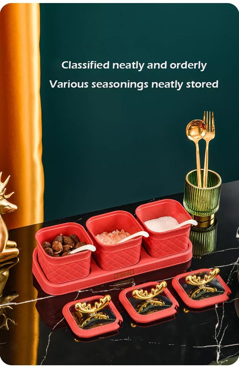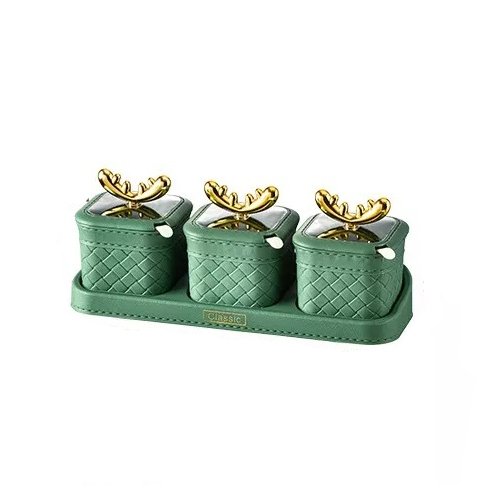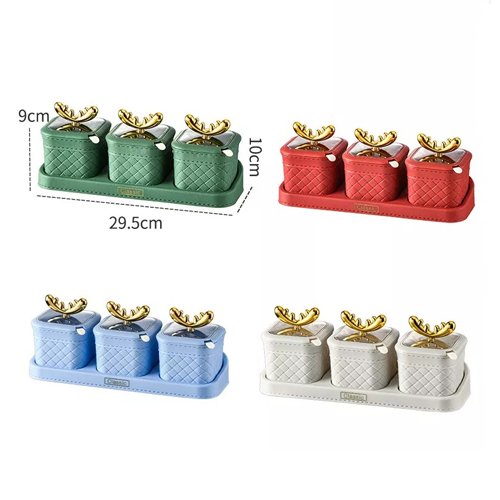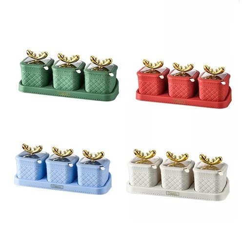 Imitation leather texture, thick material, light luxury gold-plated antler handle Elegant light and luxurious color matching imitation leather texture design, giving you a delicate experience of kitchen storage The set combination is easy to carry, and the kitchen seasoning is done in one set The transparent cover is clear at a glance, and the strong load-bearing wall is stably mounted Product name: Seasoning storage box Color: light blue, army green, red, white Size: as shown Features: large capacity, multi-grid, wall-mounted material: plastic Style: light luxury Quantity: 1