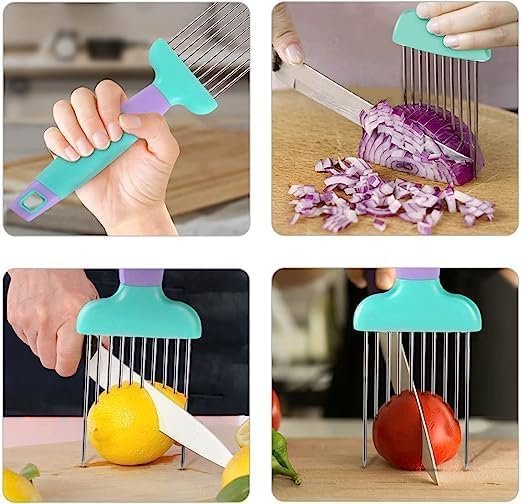 Sharp Holder: The onion slicer is made of stainless steel, sharp and neat, not easy to fall off, and can quickly chop the onion.