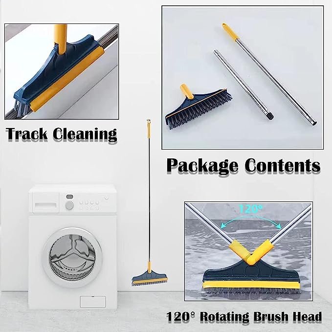 【2 in 1 Floor Scrub Brush】Our floor cleaning brush it has the function of brushing and scraping. You can use the back of the scraper bar to scrub after sweep your floor. Scraping water and brush your floor at the same time, clean and dry with a single wipe! Finish your cleaning job quickly. Make every corner easy to clean.