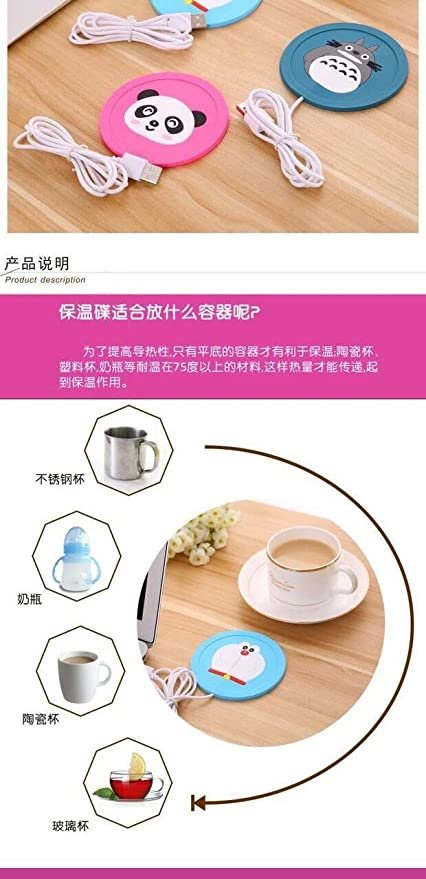 USB Warmer Cup Mat: cute cartoon pattern, keep your drink warm. It is fast and safe, can be insulated by USB, and the surface is easy to wipe clean.