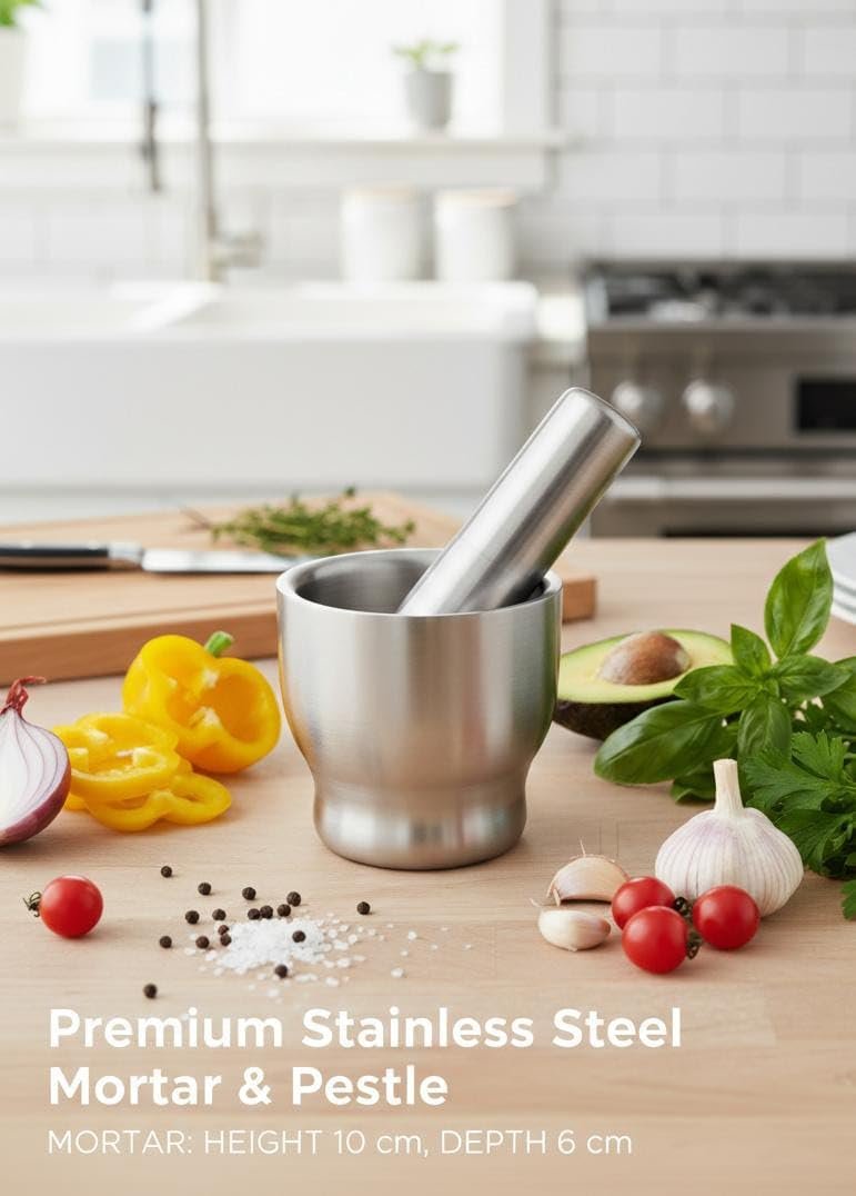 Unlock the Full Flavor of Your Ingredients! Nothing beats the taste of freshly ground spices and herbs. Our Stainless Steel Mortar and Pestle is an essential tool for any home cook or professional chef who values authentic flavor. While electric grinders generate heat that can dull the aroma of spices, manual grinding preserves the essential oils and full-bodied taste of your ingredients.