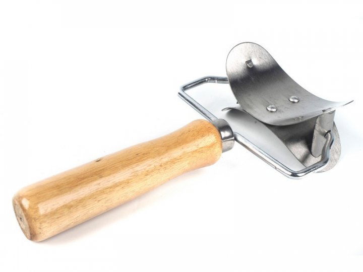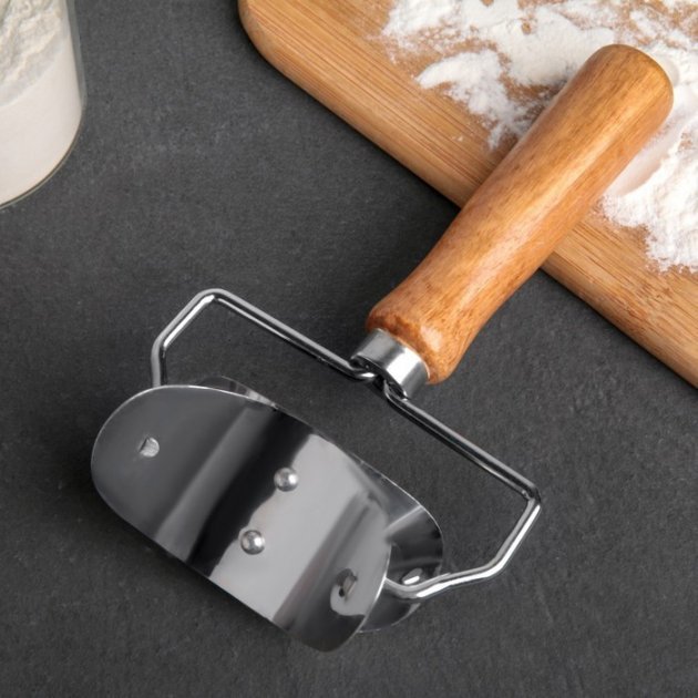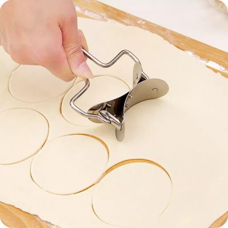 The tool for cutting circles is a roller for cutting dough for dumplings, dumplings, manti, cookies, pies. The diameter of the circles that can be obtained using a roller is 7 cm. The way to use the dough roller is quite simple: Roll out the dough to the desired thickness and, firmly and evenly pressing the roller against the dough, slide it over it. The roller will leave behind sliced circles that you can easily and simply detach from the remaining dough and use further.