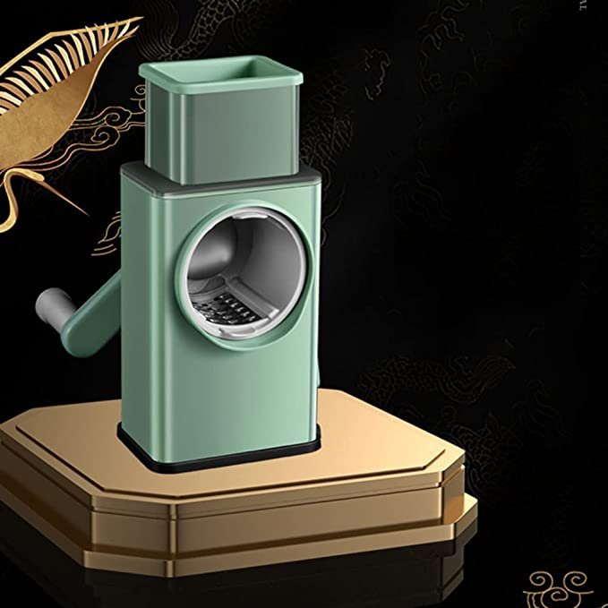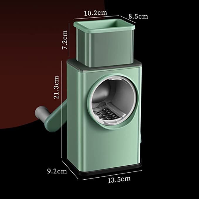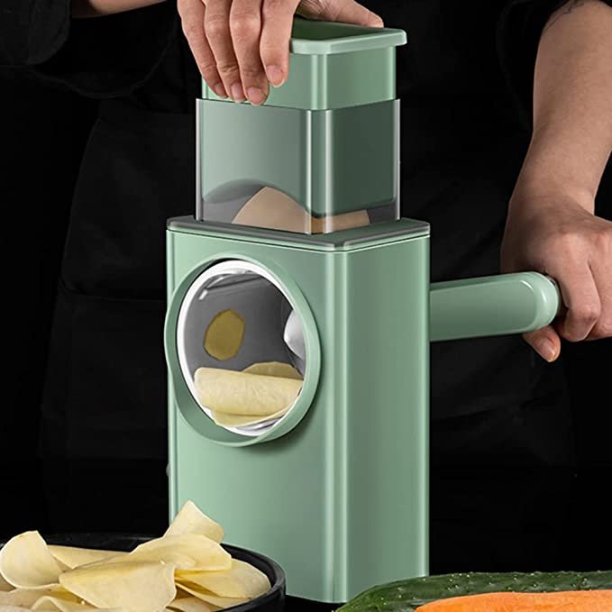 Multifunctional vegetable cutter with three blades for slicing, shredding and grinding.
