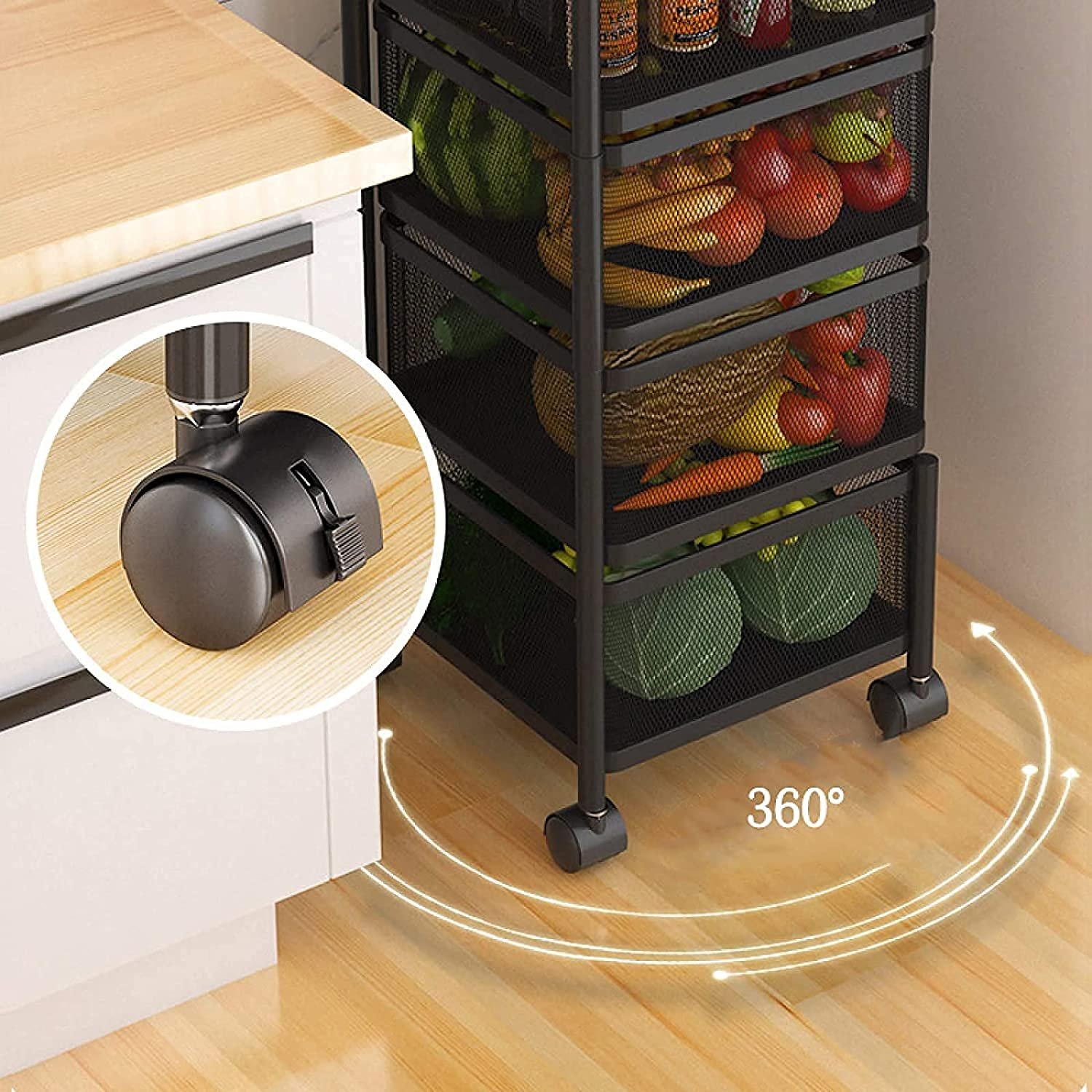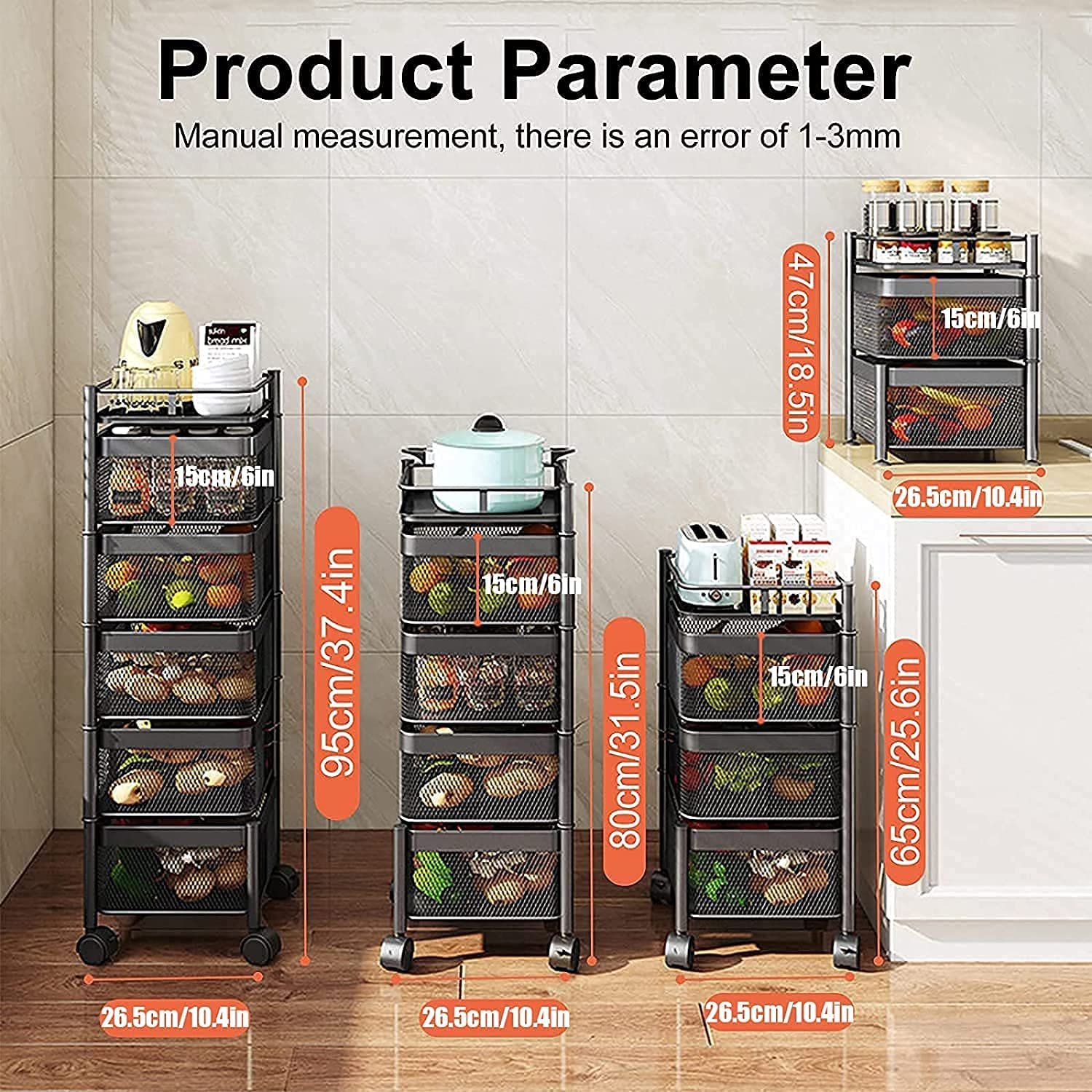 【High Quality Materials Rotating Vegetable Rack】: The storage rack organizer with high quality and environmentally friendly paint, it is not easy to rust even if it is placed in a humid environment for a long time. Therefore, you can safely put the storage rack in the bathroom or any other place.