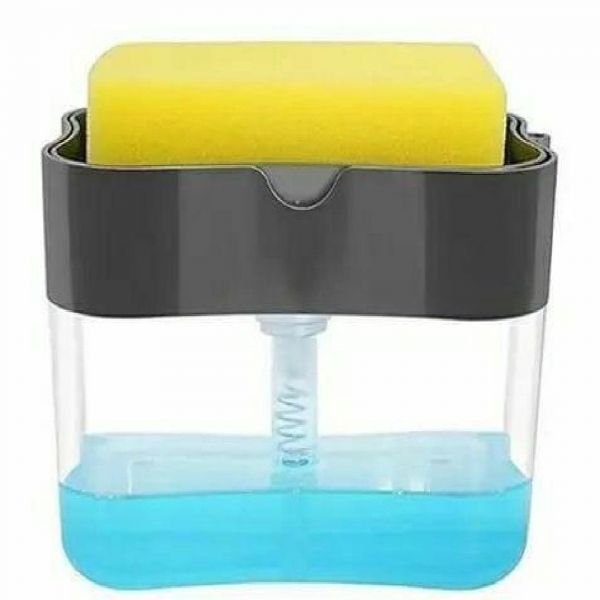 Fill it up with 13oz of your favorite dish soap, then use the included sponge to press down on the pump, which dispenses the perfect amount of dish soap up onto the sponge.