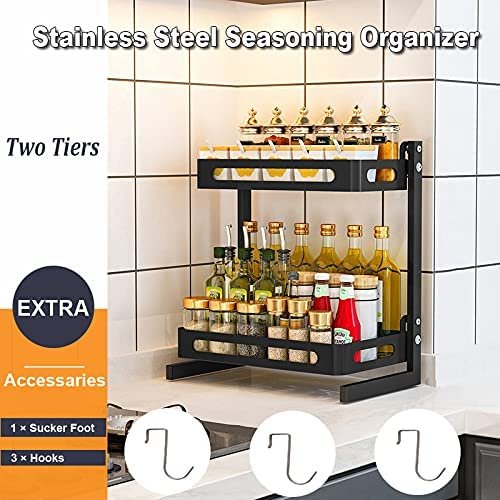 2.ULTIFUNCTIONAL FUCTIONS: Belvery kitchen provide this storage rack with multiple functions Seasoning Organizer, which can perfect for storing spices, condiments, canned goods, salt & pepper grinders, grains and much more.