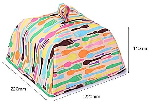 MULTIPLE USAGE: These covers not only works perfect for outdoor party, cooking activities, BBQ, camping, picnic or home kitchen on bowls, plates, utensils, any opened drinks, snack and fruit but it also keeps salads cool and hot food warmer for longer. STURDY AND EASY TO USE: Set of 2 food covers with inside thicker aluminum foil, waterproof material. It is made of premium quality galvanized steel so that it can offer sturdy support, extremely easy to pop-up and locks in place and simply fold for storage. PERFECT SIZE: Large size: 14.5"x14.5"x 5.9" (37cm x 37cm x 15cm) Small size: 8.6"x8.6"x4.5" (22cm x 22 cm x 11.5cm)COLLAPSIBLE, WASHABLE AND REUSABLE: Clean the spot by wet scrubbing cloth, hand wash it and air dry