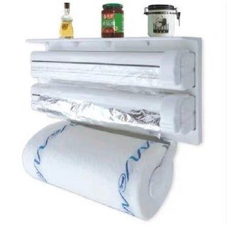 First layer: loaded with plastic wrap ( cling film diameter of 6 cm or less can ) , Second layer: plastic bags or foil mounted. , Third layer: towel rack ( mounted roll towel , paper towel holder can adjust the length according to the length of paper towel ) .