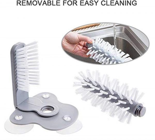 ●[With Suction Cup: There are three large suction cups at the bottom of the brush, and the suction cup base can fix the countertop or sink.