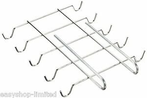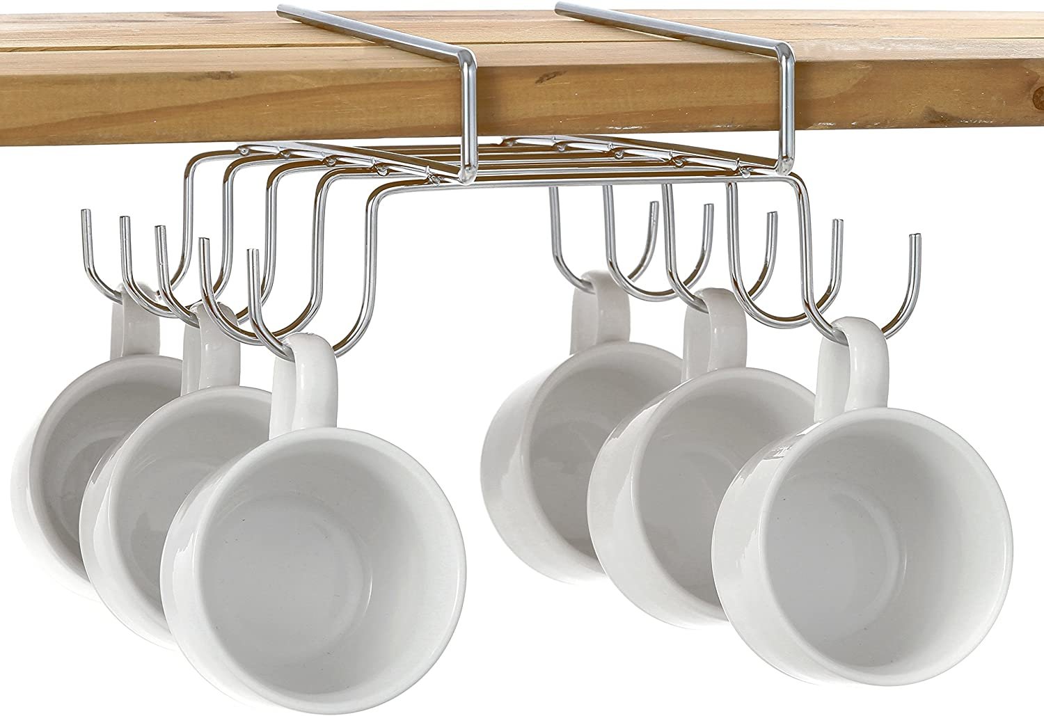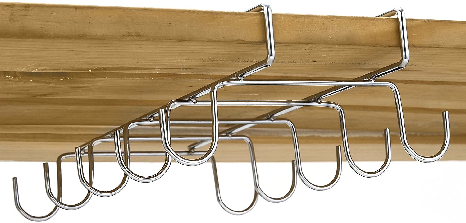 Metal under-the-shelf espresso or tea cup rack with 10 ball capped hooks.