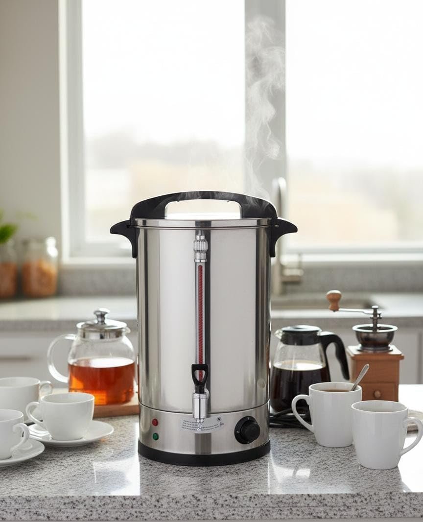Upgrade your beverage service with this 10L Stainless Steel Electric Water Urn. Designed for "fast-paced living," its 2000W power ensures boiling speeds in as little as 3 minutes. The adjustable thermostat gives you full control over the water temperature, while the sleek, durable design makes it an essential appliance for any kitchen, office buffet, or social event.