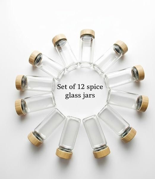 Add a touch of elegance and organization to your kitchen with this 12-piece glass spice jar set. Each transparent glass container allows you to easily identify your spices, while the airtight wooden lid keeps them fresh and flavorful. Perfect for storing spices, herbs, grains, or nuts. A stylish and functional addition to any modern kitchen.
