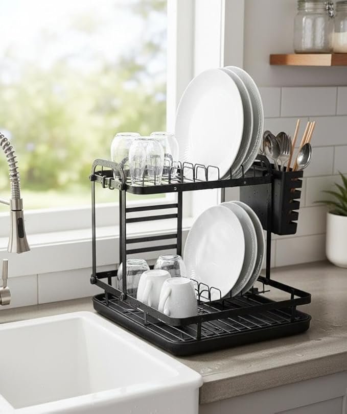 Organize your kitchen with elegance and efficiency using this modern 2-tier dish drying rack. This organizer is built to handle heavy daily use while maintaining a sleek, professional look.