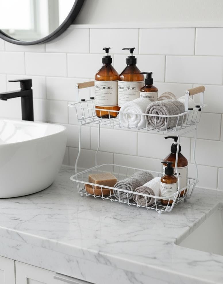 【2-Tier Design, Double the Space】This fruit basket adopts a 2-tier structure design, providing more storage space, easily classifying and storing fruits, vegetables, snacks, bread, potatoes, onions, etc, keeping the kitchen countertop neat and tidy. 【Sturdy and Durable, Easy to Clean】The fruit basket made of high-quality rust-proof iron mesh, it is sturdy and durable, not easy to rust, and the mesh design is ventilated and breathable, effectively extending the freshness of ingredients. 【Multifunctional Storage Rack】This iron wire basket can not only be used as a fruit basket, but also as a bread basket, snack basket, egg basket, produce basket, and more. 【Simple and Stylish Style】The fruit bowl has a simple and stylish appearance design, matched with high-quality materials. It is not only practical, but also be used as a decorative bowl in the kitchen. It is an ideal choice for your kitchen organizers and storage. 【Easy to Assemble and Disassemble】The 2 tier fruit basket is easy and quick to install, with a more reasonable design, no screws required for assembly. Can be disassembled and used for kitchen counter, it is an elegant space-saving storage solution.
