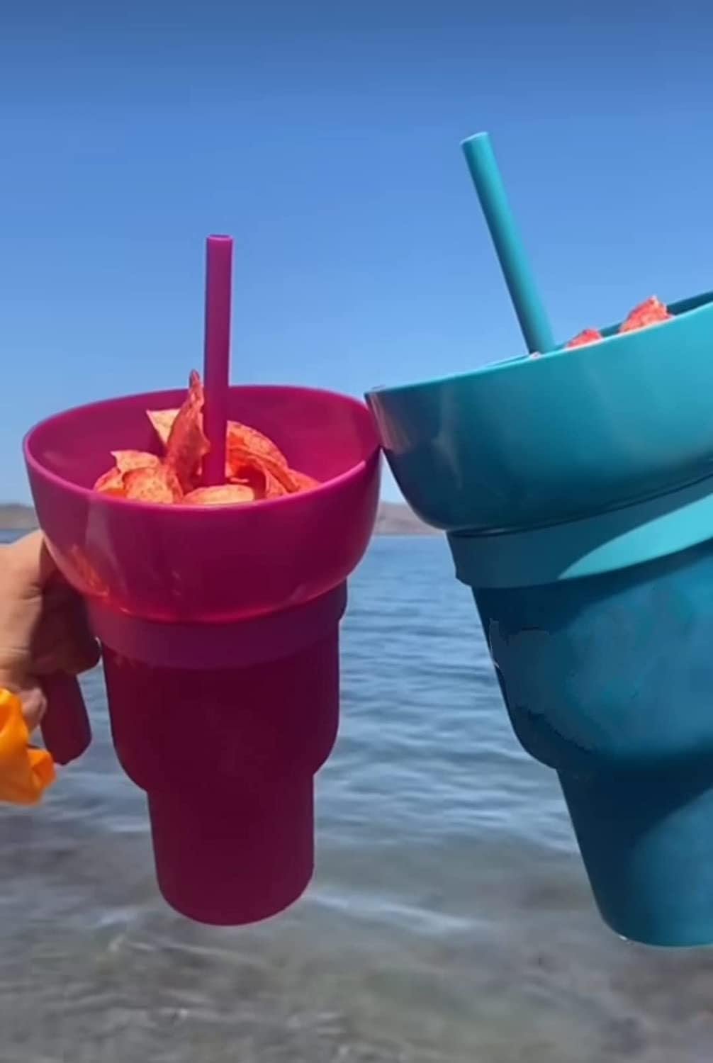 THE 2 IN 1 DESIGN Enjoy your favorite snacks and drinks on the go with this innovative popcorn water cup that combines a stadium cup and snack bowl with straw. Cinema Essentials Say goodbye to sharing popcorn bowls with our handy snack cups, perfect for movie nights at home or theatre. SPECIAL CUP DESIGN Experience hassle-free snacking and drinking with the splash proof and leak proof lid of this popcorn water cup. MULTIFUNCTIONAL This snack cup provides ample space for chips and more, allowing you to enjoy a variety of snacks in one container.
