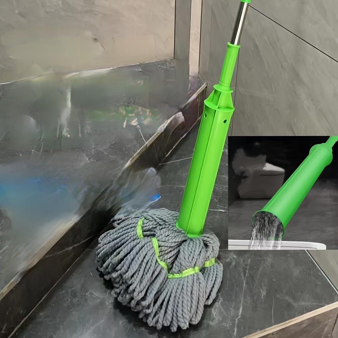 2-in-1 mop for both wringing dry and mopping wet, save time and effort. making floor cleaning easier, no need to bend over, no need to wring by hand Ultrafine Fiber Mop: Mop head with super fine microfiber fabric, fear no stains.Takes on all water spots, hair, dirt, convenient. can be stored upright for convenience, slim storing width of 7cm, mop head dries faster Automatically folds with a simple tap: Just lightly tap on the floor and the mop will automatically fold Flat and Flexible Mop Base: suitable for cleaning corners: Thin base, can reach all nooks and crannies, easily rotates 360 degrees without obstacles