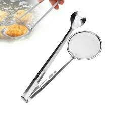 2 IN 1 STAINLESS STEEL STRAINER SPOON WITH CLIP, WHICH CAN HELP YOU FILTER YOUR FOOD OIL EFFECTIVELY WHEN FRYING. 100% BRAND NEW AND GOOD QUALITY. MADE OF RUST-RESISTANT MATERIAL, STURDY ENOUGH AND NOT EASY TO RUST.