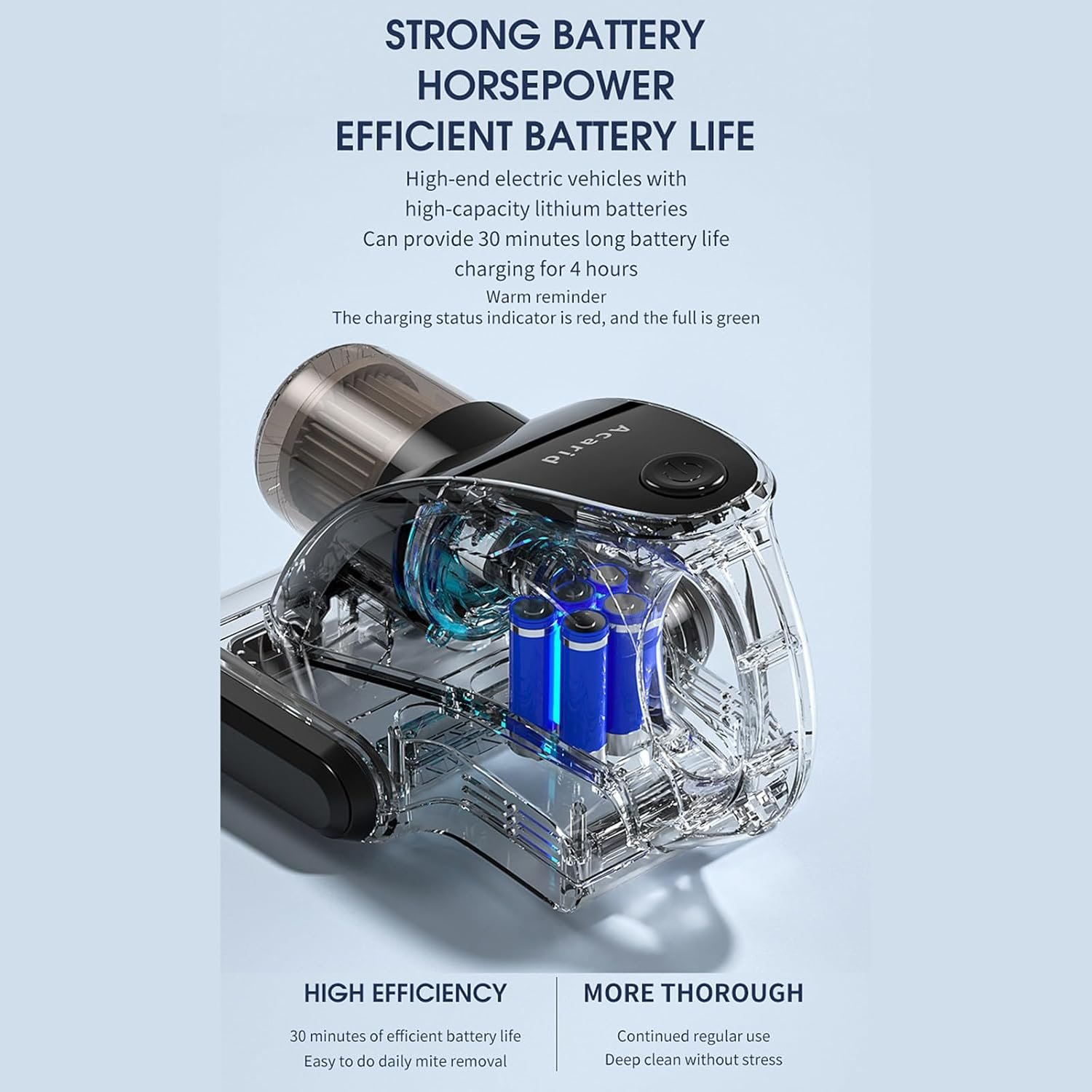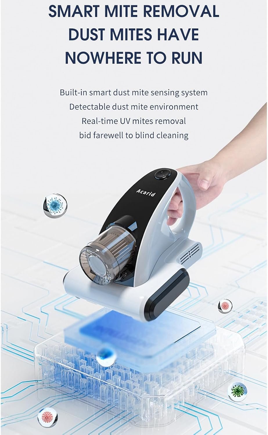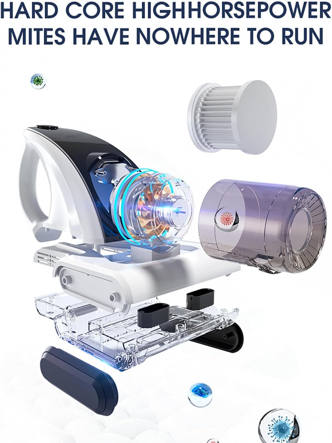 【High-Performance Mite Removal Device】 Strong anti-mite and anti-bacterial effect. Thanks to its purple light, mites cannot escape, quickly eliminating them, purifying the air, and improving cleaning efficiency. 【Quick Cleaning】 200mm wide suction port cleans a large area. Fast cleaning, high efficiency, and easy to clean the bed in 3 minutes.