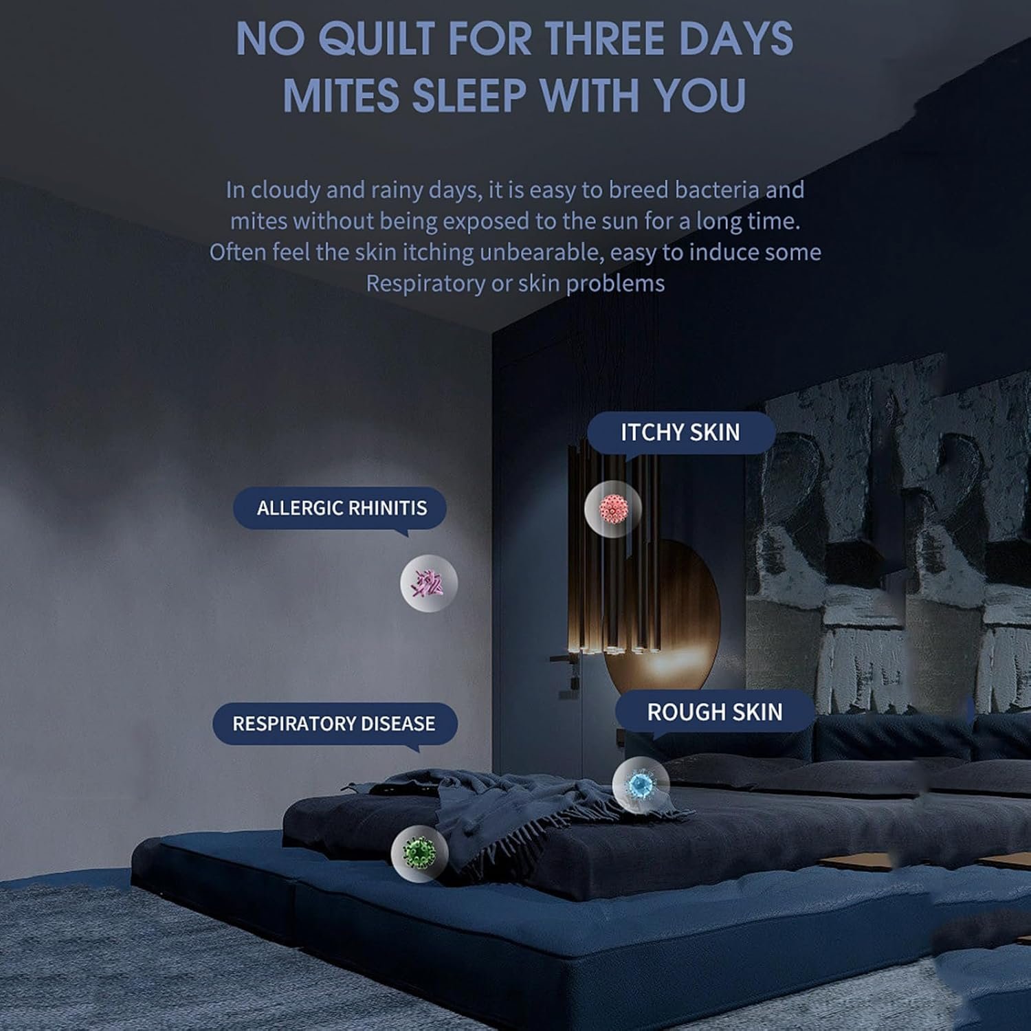 【UV Sterilization and Drying】 The LED light source in the mite removal device uses ultraviolet rays to remove mites and sterilize them without harming the skin. The UV LEDs contain no harmful substances, and the lamp beads have a long lifespan, making it more suitable for some advanced sterilizers.