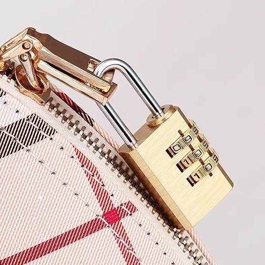 Elevate your security with the Brass Finish Padlock—a 3-Digit Combination Lock with Keyless Convenience, Durable Body .