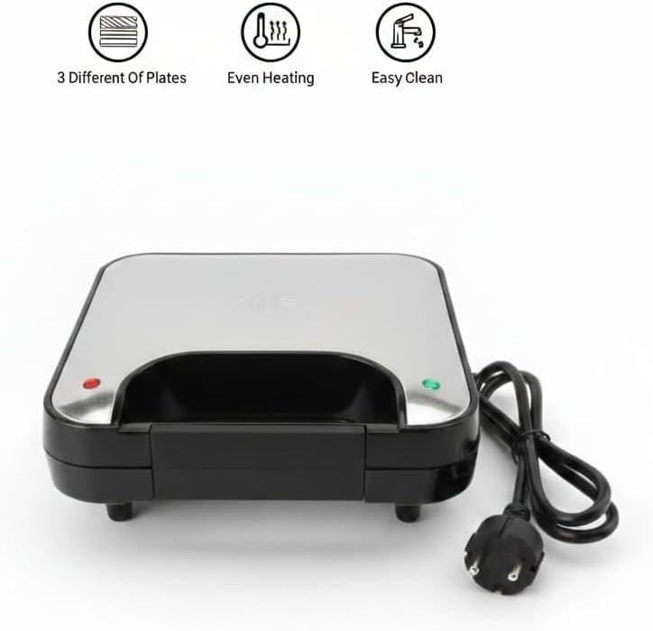 Upgrade your kitchen with this versatile 3-in-1 Sandwich Maker. Whether you're craving crispy waffles, golden toasted sandwiches, or grilled snacks, this appliance does it all. The easy-to-swap plates make transitioning between meals a breeze, while the sleek, modern finish fits perfectly on any countertop. Ideal for busy mornings and small apartments.