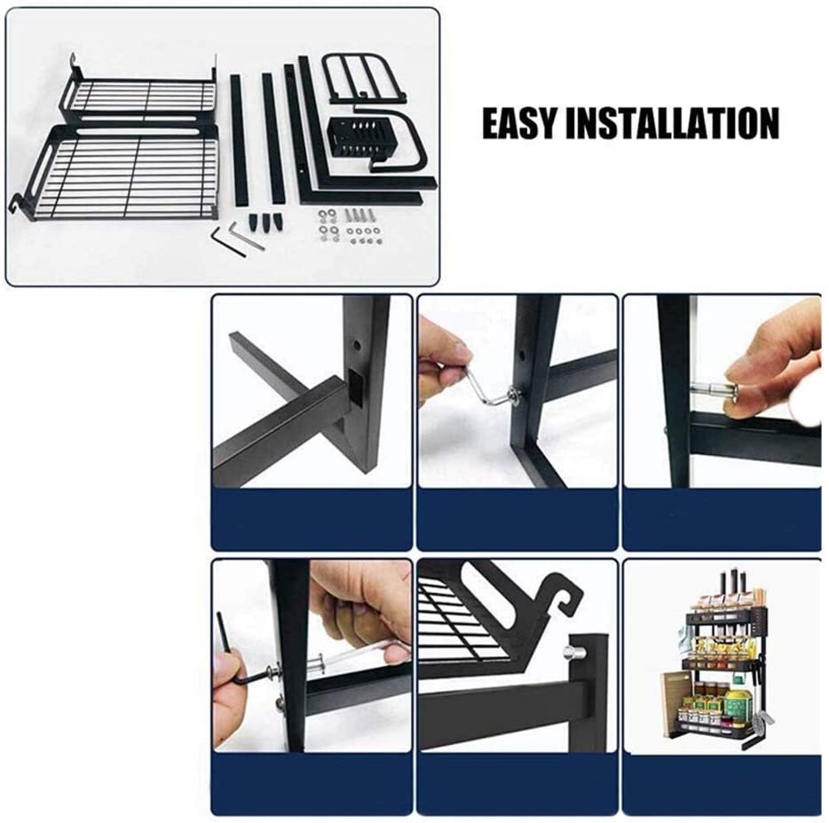 ANTI-RUST AND STURDY: Made of stainless steel with black coating protection, this heavy duty storage shelf is waterproof and very sturdy, which could hold up to 66 lbs., Each extra shelf is also large capacious, holding up to 22 lbs.