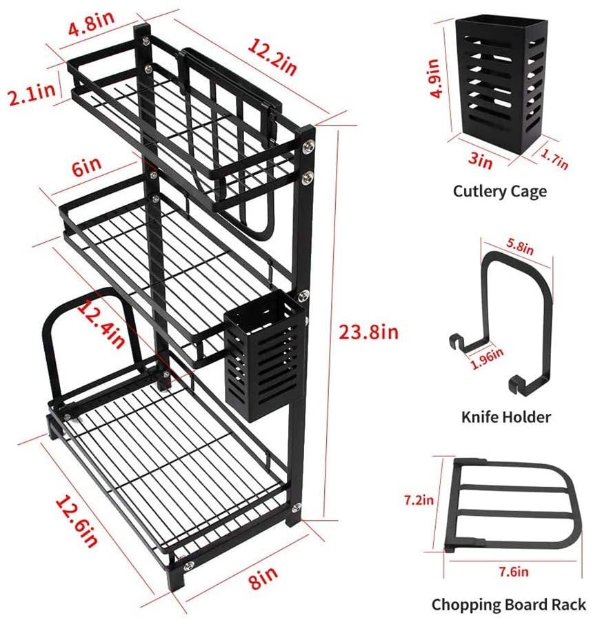 TRENDING DESIGN AND MULTIFUNCTION: Aesthetic Style and trending black color is ideal for various décor like industrial, rustic and post-modern design. Moreover, except kitchen organization, you can the storage rack for shower gel candies in bathroom, cosmetic products in bedroom, etc.