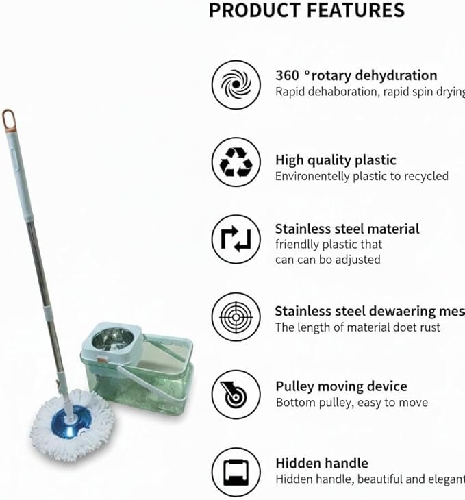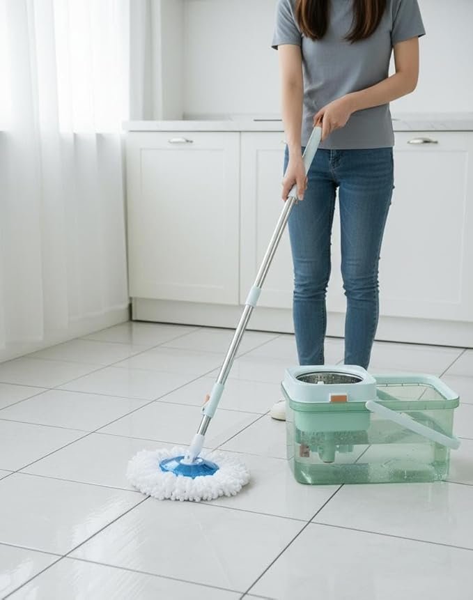 Upgrade your home cleaning routine with the Ultimate 360° Spin Mop System. This stylish and functional set is designed to take the labor out of floor mopping. The transparent bucket provides a modern aesthetic while letting you see your cleaning progress, and the industrial-grade stainless steel wringer allows you to control the moisture level of the mop with ease. Whether you are dealing with a quick spill or a deep weekly clean, the ultra-absorbent microfiber heads lift grime without scratching delicate surfaces. This all-in-one kit is lightweight, easy to carry, and built to last, making it an essential tool for every modern household.