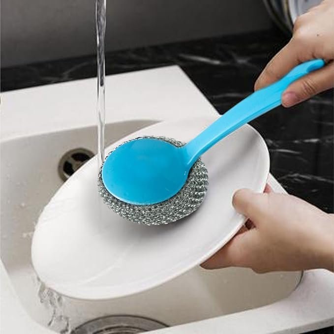 Perfect for removing grease and grime from pots, pans, baking dishes and more, this sponge is ideal for dishes that can handle heavy scrubbing + a handle that can insert the clean ball, ensuring your hand is protected from getting hurt.