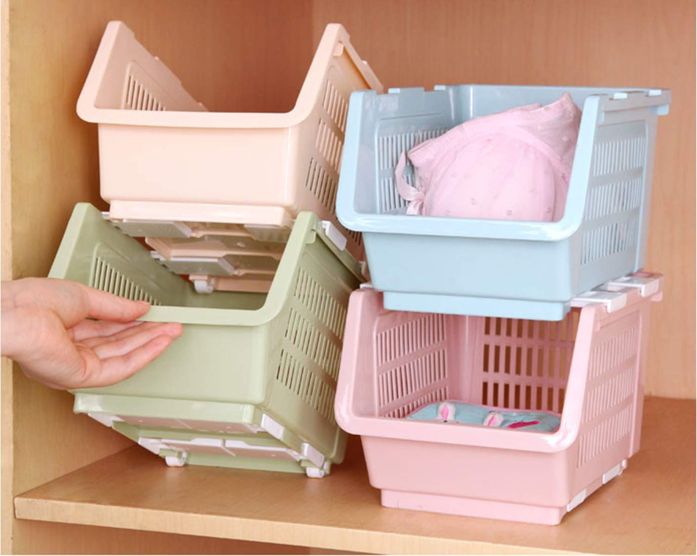 Material: The stackable basket is made of high quality PP. It is safe for food, durable and easy to clean. The smooth surface prevents hurting your hands and looks elegant in house.