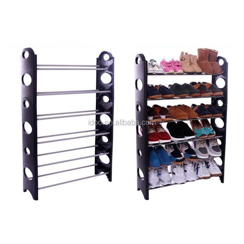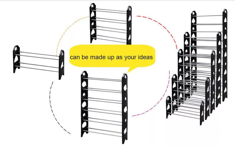 EASY TO ASSEMBLE :Shoe rack can be set it up quickly with no tools. Simply snap together the unit in seconds Safe for children and adults. Includes set of two racks that can be stacked or used separately.